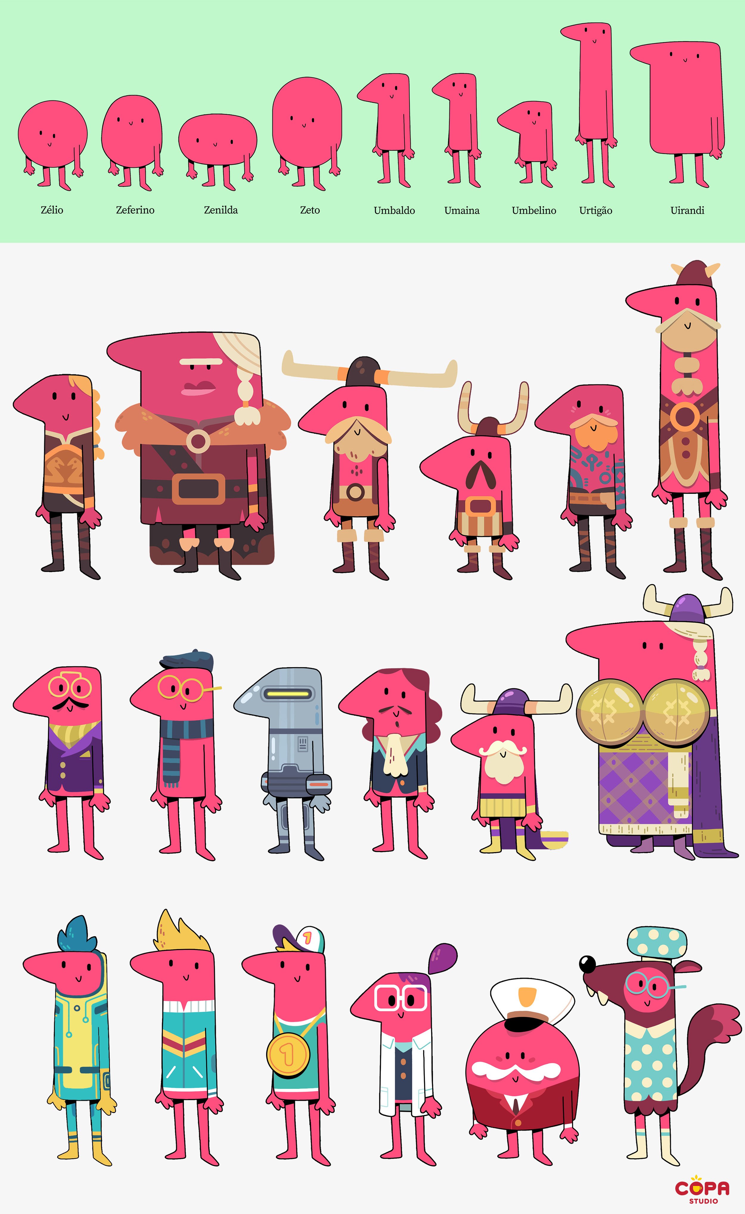 I helped design the secondary characters of the “computer world,” the Naries (binary), inspired by zeros and ones. To keep them playful and versatile, we developed simple base shapes that could be customized with different “clothes and accessories” allowing us to create entirely new characters for each episode, from vikings to robots, while keeping a cohesive and iconic visual style.